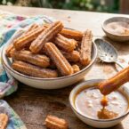 Crispy gluten-free churros, fried to golden perfection and served with a luscious caramel rum dipping sauce. A delightful dessert for any occasion.