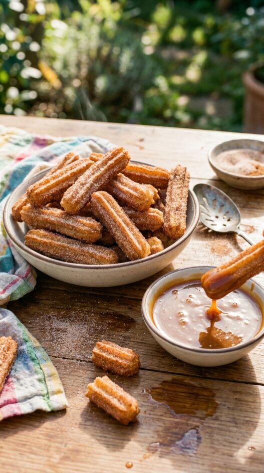 Gluten Free Churros and Caramel Rum Sauce