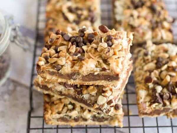 These Gluten Free Seven Layers Bars are a perfect dessert for any occasion. They are packed with layers of chocolate, coconut flakes, and pecans.
