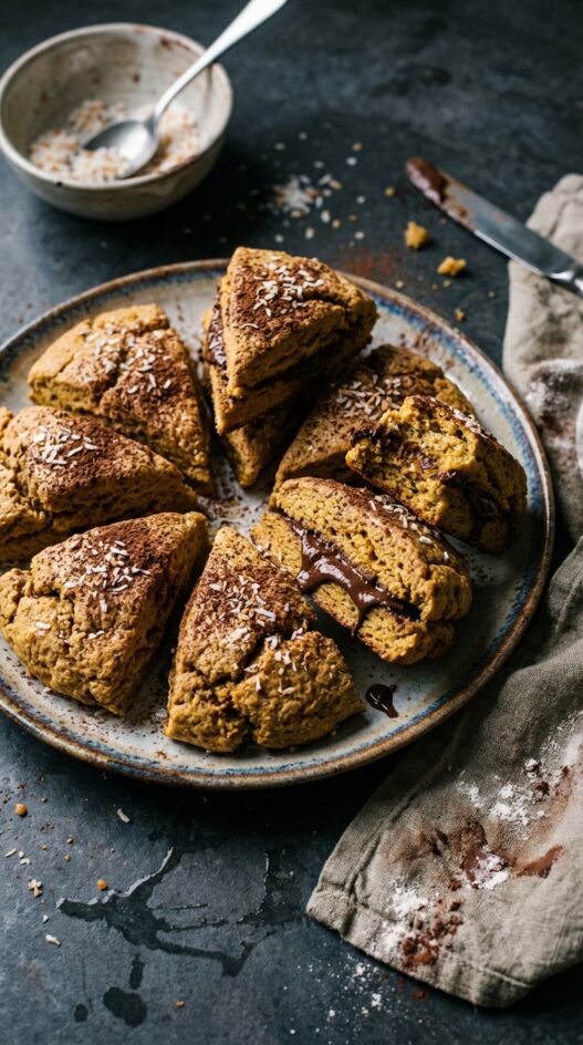 - Optionally, spread a layer of Carob Nutella between the scones.