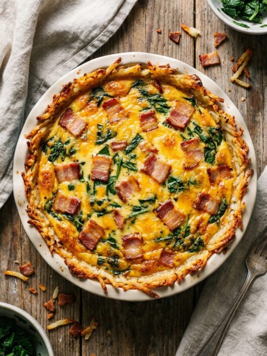Spinach and Bacon Quiche with Hash Browns Crust