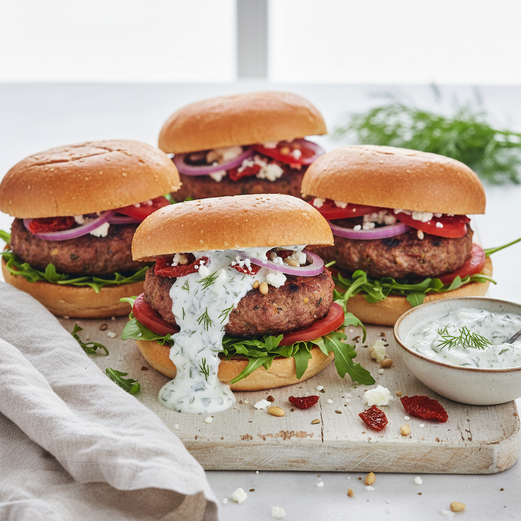 The patties are seasoned with classic Mediterranean flavors like oregano, garlic, and often feta cheese mixed right into the ground meat. Serving them with tzatziki, a yogurt and cucumber sauce, ties everything together.