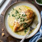- Strain and Serve: Place a fine mesh sieve over a bowl and strain the sauce to ensure its smooth. Serve the sauce hot over the cooked chicken breasts. Garnish with freshly chopped dill or parsley.