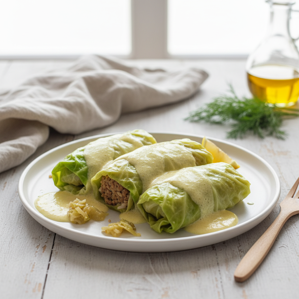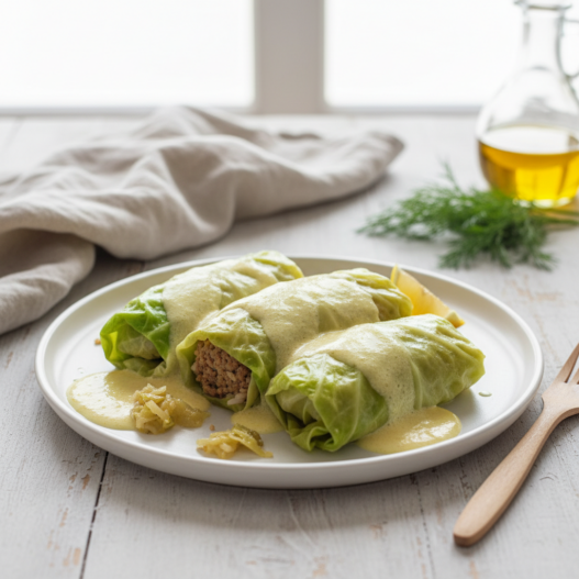 - Serve the Dolmades on a plate with the lemon sauce poured over.