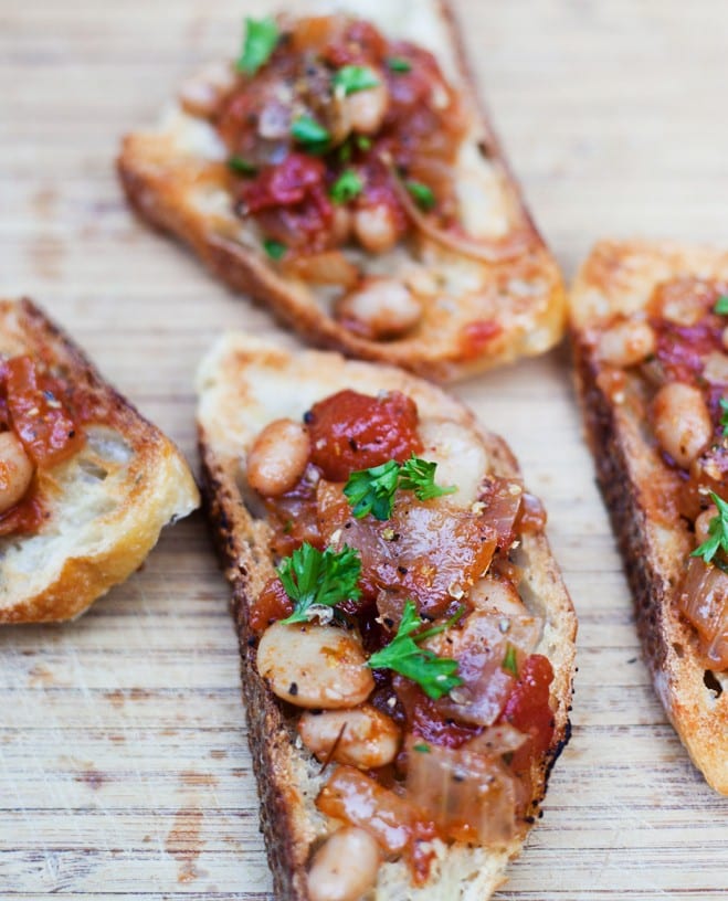 - Serve the bean mixture on top of the toasted bread slices, drizzled with a little more olive oil if desired.