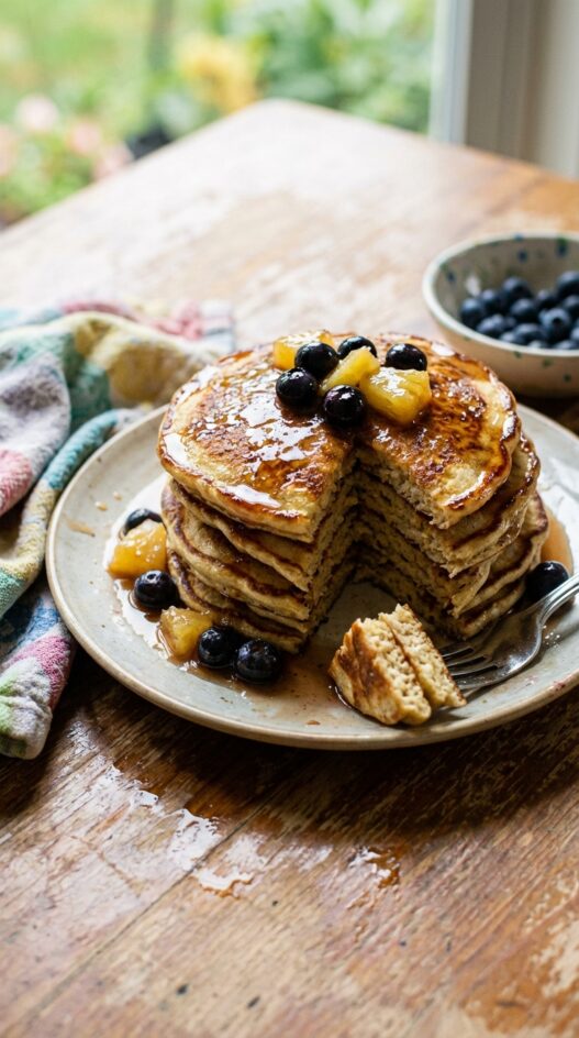 Greek Yogurt Pancakes and Pineapple-Blueberry Syrup