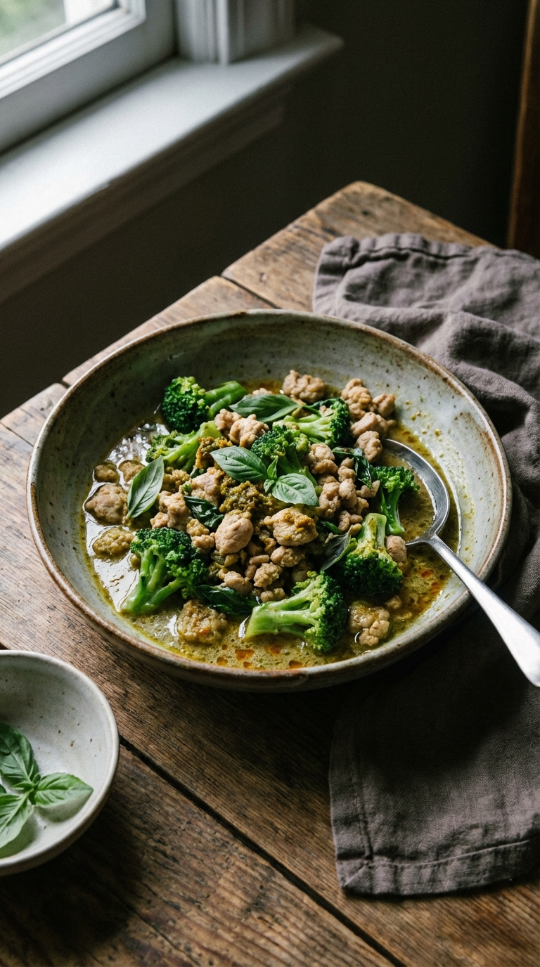 A quick, flavorful stir-fry inspired by Nigel Slater. Broccoli and chicken get a vibrant boost from Thai green curry paste.