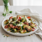 Grilled sprouts, salami, and smoked mozzarella make a surprisingly earthy summer salad. Perfect for a BBQ or weeknight dinner.