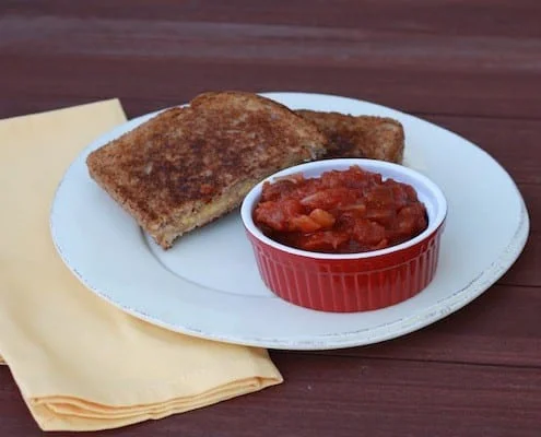 A little bit fancy, but undoubtedly still a simple grilled cheese, an easy meal you can’t ever go wrong with! I fell in love with this chutney…it’s spicy and a little bit sweet and has a great chunky texture. The chutney can be used to dip the sandwiches, or you can spread a layer between the slices for tomato in every bite. Leftover chutney can be stored, in an airtight container, in the fridge for up to three months. I have a bunch of it left so I’m figuring out how to use it!
