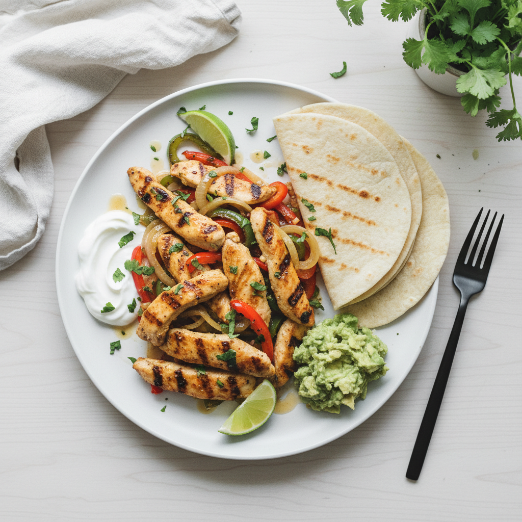 - Serve the chicken and vegetables with flour tortillas and your choice of toppings.