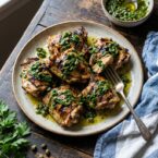 In this recipe, I marinate chicken thighs in 3/4 cups of the sauce, and reserve the remaining salsa verde to top the grilled chicken. You can certainly use chicken breast for this recipe, but you’ll have to adjust the cooking time accordingly, as they are usually thicker than boneless thighs. Boneless and skinless chicken thighs are my go-to for grilling, as they have much more flavor than the breast and they cook quickly.