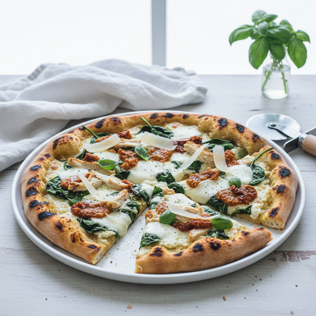 Grilled Chicken Sun Dried Tomato and Basil Pesto Pizza