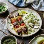 Enjoy these grilled Chilean beef skewers with a drizzle of smokey chimichurri and a side of cilantro rice.