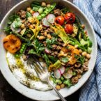 The best part about this salad? You can customize it however you want. In the summer, stick to stone fruit – but in the colder months swap out for a grilled kabocha or acorn squash. Mix and match your week’s farmers market haul and have some fun with it. It’s all about featuring a combination of fresh and grilled seasonal ingredients, tons of fresh herbs and that zippy Za’atar dressing.