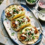 For a spicier crema, add more hot sauce to taste. These tacos are best served immediately after grilling. If using shrimp, adjust the grilling time to 2-3 minutes per side. Store any leftover crema in an airtight container in the refrigerator for up to 3 days.