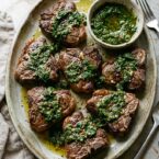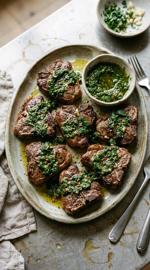 - Arrange the chops on a platter and spoon chimichurri generously over the top. Serve with extra sauce on the side.