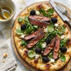 Loaded with grilled steak, fresh watercress, blackberries, and a vinaigrette, this flatbread tastes like a delicious spring salad served on a crust.