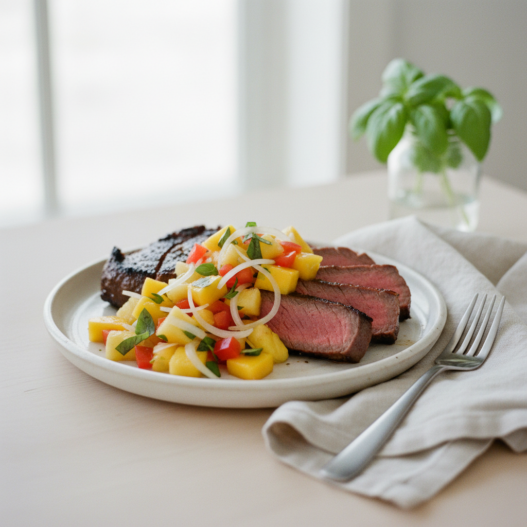 Grilled Steak and Mango Pepper Salsa