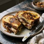Last year I added two new toppings to the mix, but I’m pretty sure they’re going to be standards from here on out. Caramelized onions and fig jam have officially earned their place on the grilled cheese party circuit. It was inevitable from the beginning that those golden onions and that thick, sweet jam would make their way onto a sandwich piled with gruyere and black forest ham. They were destined to be together, and from here on out, together they shall be.