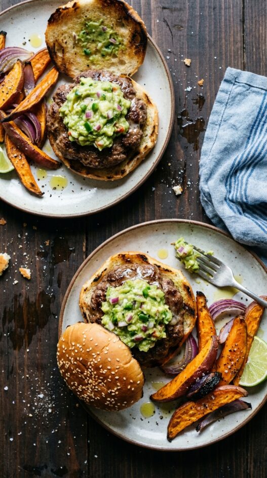 Juicy burgers topped with creamy guacamole, paired with perfectly roasted sweet potatoes. Ready in under 30 minutes!