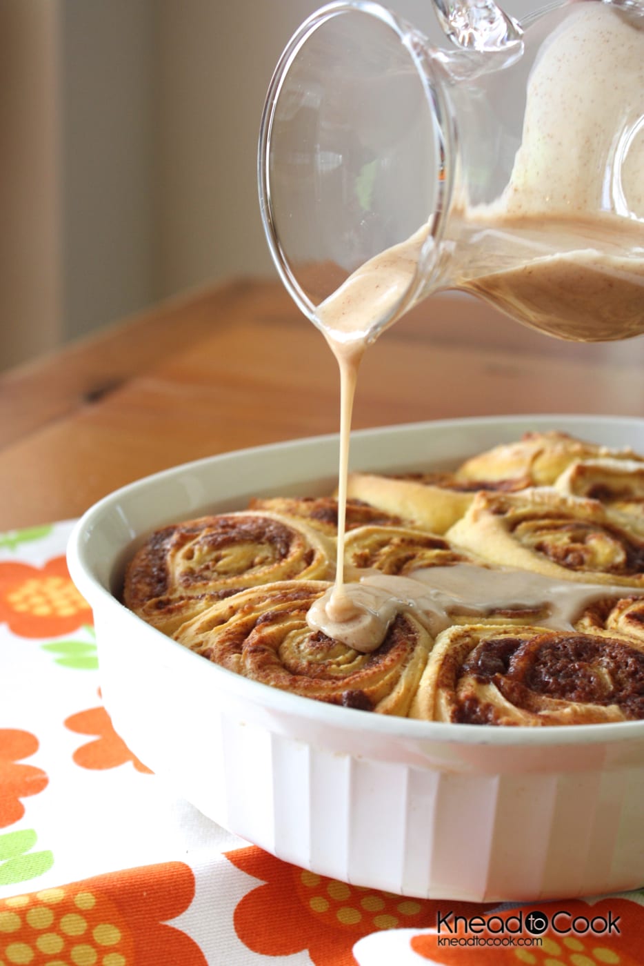 Healthier Pumpkin Cinnamon Rolls with a Pumpkin Spice Glaze.