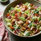 This one is perfect. A straightforward vinaigrette in place of the heavy, anonymous dressing. Prosciutto crisped until shattering and sweet, standing in for bacon.