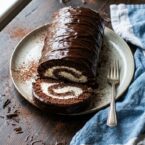With an intensely chocolatey sponge, whipped cream + mascarpone filling and a shiny chocolate ganache glaze… this one’s a no-brainer. And it’s gluten free as well! Of course, if gluten free isn’t a requirement, you can easily make this Swiss roll with plain wheat flour.
