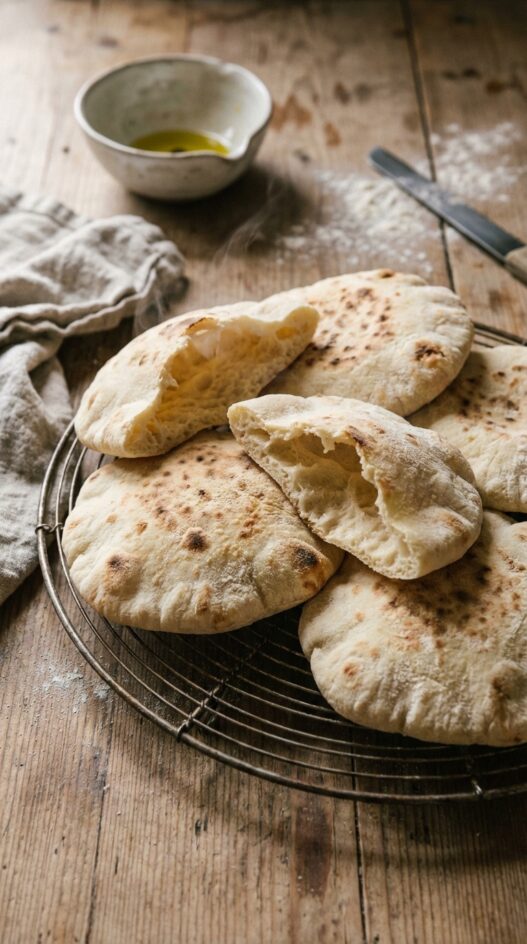 Fluffy pita bread, perfect for falafel,