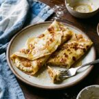 Tender crepes filled with a sweet ricotta and honey mixture, layered with tart applesauce. A delightful breakfast or brunch treat!