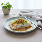 - Sprinkle a dash of white pepper over the steamed cod steak.
