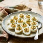The next time you make deviled eggs, try with quail eggs for a beautiful presentation and a bite that is much more manageable, like this recipe from Manchester Farms Quail.