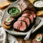 A whole roasted beef tenderloin feels fancy because it is fancy, making it ideal for serving on special occasions like the holidays. Knowing how to properly roast a whole beef tenderloin is something that’s great to have in your back pocket for any kind of entertaining. It’s elegant, but approachable, and always gets rave reviews from the crowd.