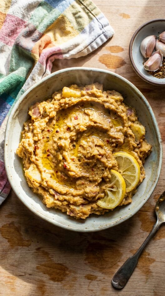 Mashed potatoes get dull fast. Swap the cream and butter for a hummus-style base: tahini, lemon, cumin, chickpeas, garlic, vegetable broth. Blended smooth and stirred into cooked red potatoes, the result is earthier and sharper than standard mash. Red potatoes work better than russets here; they hold some texture even when mashed. Good warm with a drizzle of olive oil and a wedge of lemon on the side. Good enough to eat as the main course.