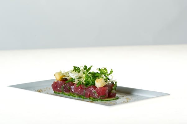 A fresh and vibrant Ahi Tartare from Chef Michael Lofaro, featuring sashimi-grade Ahi and a flavorful vinaigrette, perfect for showcasing the essence of island cuisine.