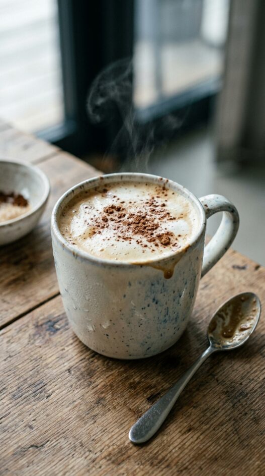 No machine needed at all — just a mug and a spoon. Combine 1 tablespoon of instant coffee powder with 2 tablespoons of granulated sugar and 1 teaspoon of water, then beat vigorously until the mixture turns pale and creamy. Pour hot milk over the whipped paste, stir, and serve immediately.