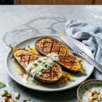 - Serve the eggplants warm, drizzled with a generous amount of cucumber mint raita on the side or over the top.