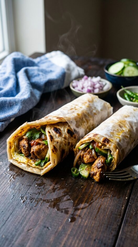 This Kolkata-style chicken is wrapped in an egg paratha and very similar to street food you would find in India. But each is different! Here is one take on the favorite bite.