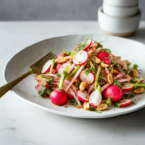 A unique and flavorful Indian-style salad featuring crisp radishes and crunchy roasted peanuts. A warm dressing of tempered mustard and cumin seeds adds a fragrant, spicy kick.