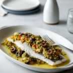This elegant baked sea bass is topped with a vibrant mix of olives, artichokes, and sun-dried tomatoes. It’s a quick, healthy, and flavorful main course perfect for any night of the week.