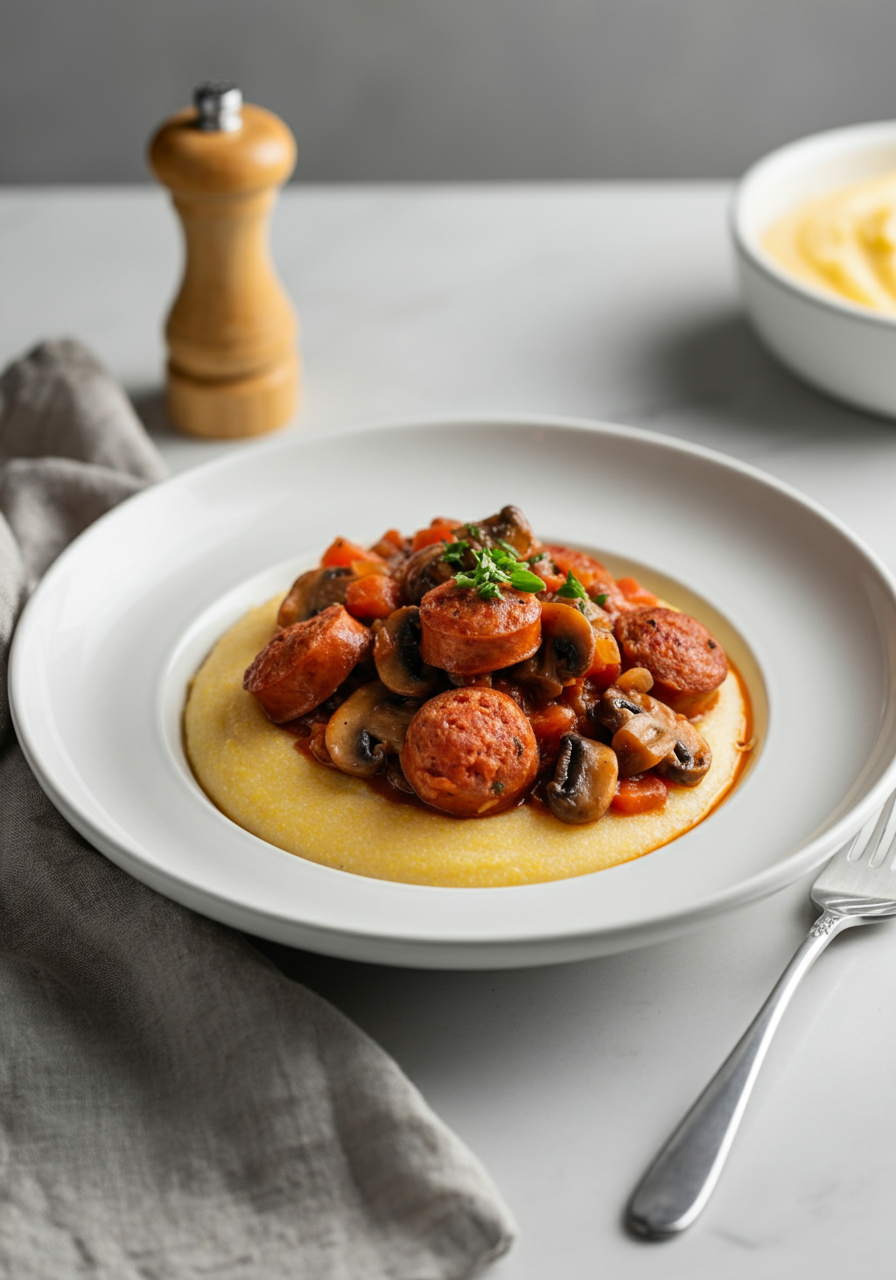 What type of sausage should I use for the Mushroom and Sausage Polenta?