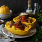 Get cozy with these Italian meatballs and spaghetti squash served with an extra-creamy tomato sauce.
