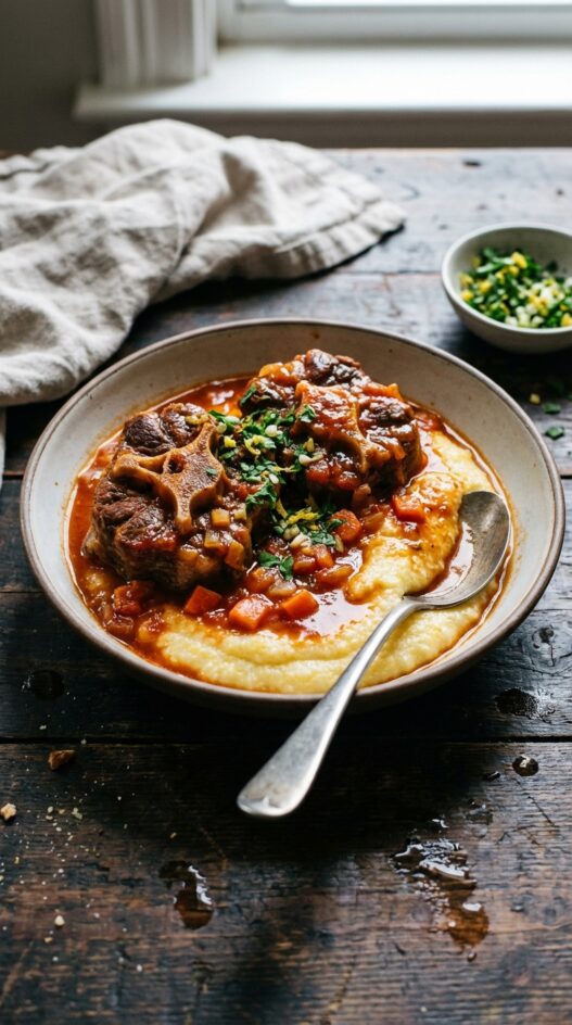 Italian Oxtail Osso Bucco with Parmigiano Polenta