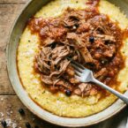 The dish’s flavors improve overnight, making it ideal for leftovers. Pork can be made a day ahead; polenta is best fresh but can be reheated.