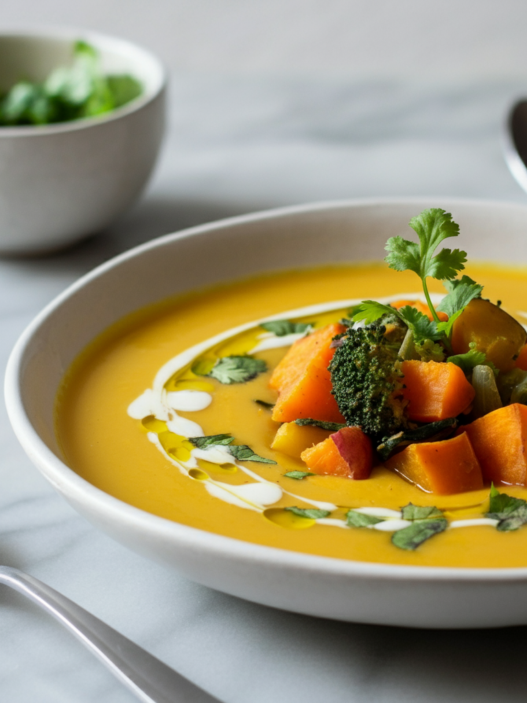 - Finish the soup and plate your dish: