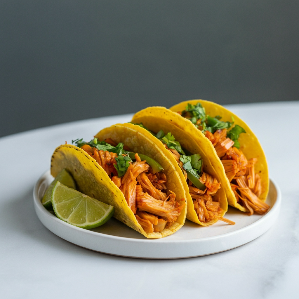 Pickled red onion, fresh cilantro, sliced avocado, and a squeeze of lime all work well. A creamy chipotle sauce or simple salsa verde cuts through the depth of the cooked jackfruit.