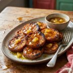 Sweet potatoes take jerk seasoning well, and most people don’t try it until they have. The allspice, cloves, and pepper in a jerk blend work with the natural sweetness of the potato rather than fighting it. Try it. Roasted at 425F until the edges start to caramelize, they get a little crisp on the outside and soft through the middle. The pineapple dipping sauce is a fast blender job: fresh pineapple, honey, vinegar, and ketchup, which sounds unlikely but hits that sweet-sour-slightly-smoky note that makes the whole plate worth eating.