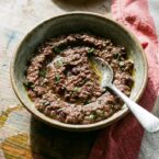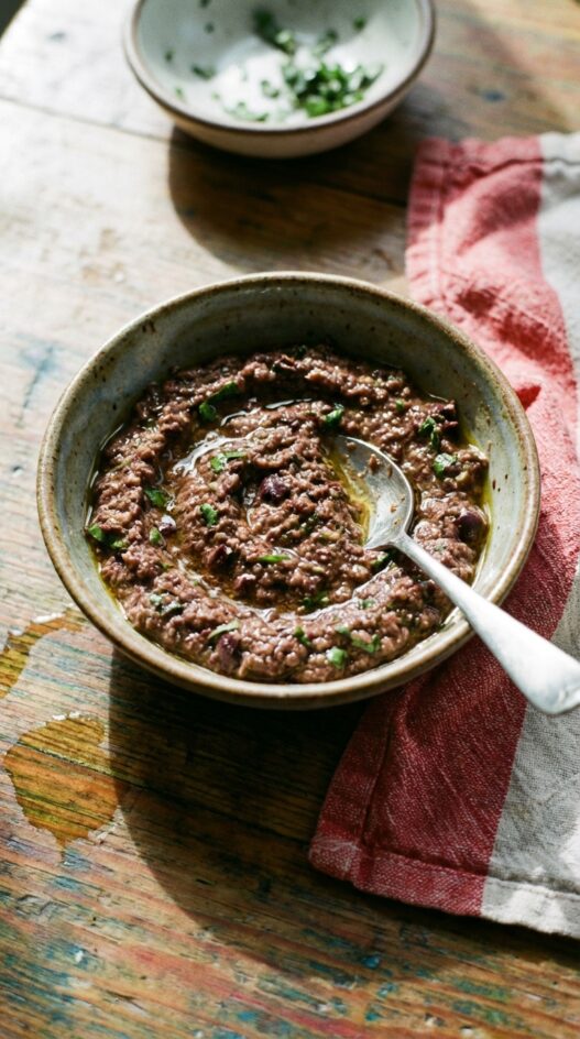 Four ingredients. Ten seconds of blending. That’s genuinely all a good tapenade takes, and this one holds its own against anything from a deli counter. Kalamata olives have a deep, fruity brine that blends into something rich and spreadable without needing anchovies or capers to fill it out. I keep a jar of this in the fridge most weeks because it rescues everything from a boring cheese board to a sad crostini situation. Spread it thick on toasted baguette, spoon it onto grilled chicken, or swirl it into pasta. Nobody needs to know it took you 30 seconds to make.
