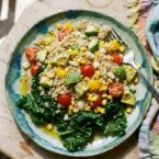 Warm quinoa will turn the avocado mushy and dull the dressing. Spread it on a plate or baking sheet to cool faster if you’re in a hurry. Cold quinoa also absorbs the dressing better and doesn’t steam the kale underneath.