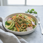 Refreshing and satisfying, this cold noodle salad bursts with Asian-inspired sesame, citrus, and spice flavors. Perfect for a light lunch or a vibrant side dish.