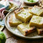 - Cool completely, cut into bars, and dust with powdered sugar and lime zest (optional).